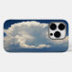 Foto de uma nuvem branca fofa sobre um grande rio. O céu está muito azul.
