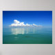 Poster de uma pintura cênica relaxante de uma nuvem branca esvoaçada num céu azul claro refletido num oceano de turquesa calmo.