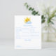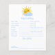 Peça aos seus convidados chás de fraldas que encham este cartão de conselhos e predições para bebês que apresenta uma ilustração bonita desenhada à mão de um sorridente sol amarelo a espreitar por detrás de uma nuvem fofa. Este adorável cartão de conselho temático "você é o meu sol" faz uma maravilhosa manutenção e é uma atividade divertida para seu chá de fraldas ensolarado! A parte traseira desta placa apresenta um padrão de nuvem texturizado branco e azul pintado à mão, que é macio e caprichoso.