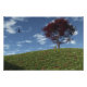 Uma paisagem 3D pacífica em primavera ou verão, criada em Vue. Em cima de uma colina coberta de grama verde e primatas coloridos, contra um céu azul com vísceras de nuvem, um mapa japonês vermelho solitário com uma bancada de madeira embaixo dela para parar e descansar. Uma águia solitária voa ao vento.