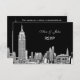 NYC Skyline Etched Look 01 Invitation Suite Black & White, Black Background mostrado: Escolha sua cor de fundo - RSVP Card ========== Elegante, na moda, convites personalizáveis de chic e acessórios com uma visão icônica da linha do Nova Iorque, com uma foto de aparência gravada do Edifício ESB e Chrysler e a visão traseira do Edifício Flatiron mostrado em um fundo preto. Você pode escolher uma cor de fundo diferente clicando no botão "Personalizar" e escolhendo "Fundo" no menu suspenso Editar. Você também pode alterar as cores do texto clicando nos campos que deseja alterar e clicando na caixa de cores exibida acima dos campos. Você também pode adicionar ou remover campos de texto, alterar fontes, etc. 2013 ©NYCisMyMuse Todos os direitos reservados