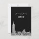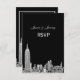 NYC Skyline Etched Look 01 Invitation Suite Black & White, Black Background mostrado: Escolha sua cor de fundo - RSVP Card ========- Elegante, na moda, convites personalizáveis de chic e acessórios com uma visão icônica da linha do Nova Iorque, com uma foto de aparência gravada do ESB e do Chrysler Building e a vista traseira do edifício Flatiron mostrada um fundo negro. Você pode escolher uma cor de fundo diferente clicando no botão "Personalizar" e escolhendo "Fundo" no menu suspenso Editar. Você também pode alterar as cores do texto clicando nos campos que deseja alterar e clicando na caixa de cores exibida acima dos campos. Você também pode adicionar ou remover campos de texto, alterar fontes etc. Este produto faz parte de um conjunto de designs correspondentes que são facilmente personalizáveis para muitas ocasiões e eventos. Se você precisar de placas RSVP separadas, Obrigado, Notas, Carimbos, ímanes, etiquetas de favorecimento, cartões de escolta, etiquetas de vinho, menus, programas de eventos ou outros acessórios, por favor veja nossas outras listas. 2013 ©NYCisMyMuse