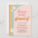 O convite de aniversário desta menina apresenta um design divertido estilo 1970 com o texto "4 sempre ranhuras". O design é acentuado com cores boho, margaridas brancas e uma fonte com estilo retroativo. Esta design é perfeita para uma garota fazendo 4 anos.