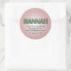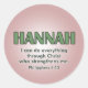 O adesivo de nome da Hannah