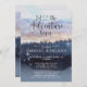 Uma aventura temática sobre a floresta inicia um convite ao chá de fraldas azul com uma bonito paisagem florestal, linha de árvores e estrelas cintilantes. Russo e sereno.