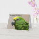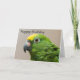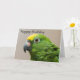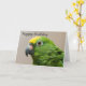 Cartão que diz o feliz aniversario que caracteriza o papagaio dirigido amarelo de Amazon. O interior está vazio para sua própria mensagem.