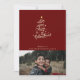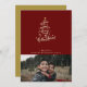Uma árvore de Natal desenhada pelo tipo com uma mensagem da vinda do Cristo e da foto da sua família.