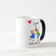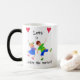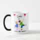 Uma caneca verdadeiramente única. Quando está frio, é apenas uma simples caneca preta. Quando você adiciona qualquer bebida quente (água, chá, café etc.), sua imagem de colagem de papel pintada à mão ganha vida em cores vibrantes. 11 oz. Apenas lavagem manual.