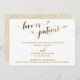 A distinção deste conjunto se deve à moderna fonte manuscrita adornada com corações e um efeito de folha de ouro falso usado para frases de destaque. Se você está na posição de precisar informar aos seus convidados de casamento que está adiando o casamento, aqui está uma opção elegante. Nesta peça, a bela fonte manuscrita foi usada para criar um gráfico que diz "o amor é paciente". Use os campos do modelo para adicionar seus detalhes pessoais e tornar este design moderno e único seu. O fundo branco pode ser alterado para qualquer cor que você preferir. A parte de trás foi coberta com um padrão dourado repetido que permite que a cor escolhida seja vista entre as linhas. Por favor, entre em contato para qualquer solicitação especial ou para assistência na personalização. // 80 //