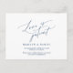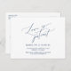 Este é o moderno script minimalista limpo, com design, em fonte azul Marinho, convite de Festa de casamento Reprogramado (o amor é paciente). É a maneira perfeita e elegante de fazer o anúncio de reagendamento para seus amigos e família.