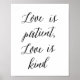 Linda caligrafia escrevendo a tinta preta em fundo branco - "O amor é paciente, o amor é gentil" - impressão de arte para o seu casamento ou para decorar em qualquer lugar da sua casa!