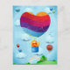 Paisagem fantástica com coração de balão e cartão de gato e namorados.