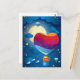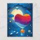 Paisagem fantástica com coração de balão e cartão de gato e namorados.