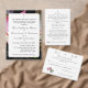 O design da frente apresenta o pedido, "Junte-se a nós para um..." como um arco sobre uma cruz de cor prateada no centro. O título "Janto de ensaio" é dividido de modo a que a palavra "ensaio" esteja acima da informação do ensaio e a palavra "Janto" esteja acima da informação do janto. O tempo e o local de cada evento são apresentados dentro de uma forma retangular. No fundo lê-se, "Honrando" depois nomes de noiva e noiva. A imagem de dois rosas entrelaçados é mostrada no canto inferior esquerdo. O reverso apresenta uma imagem aproximada de uma rosa rosa no florescimento do cheio.