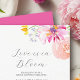 O Amor Está em Bloom - Convites de chá de panela Florais Elegantes Celebram a noiva-a-ser com estes convites de chá de panela botânicos, perfeitos para um almoço de verão com a noiva. Apresentando flores cor-de-rosa vibrantes num design floral de cor-de-água espantosa, este convite dá o tom a um encontro elegante e alegre. Elegante e botânico - Mostra florais exuberantes em pinks, laranjas e lavandas. Perfeito para qualquer Brunch Bridal - Ideal para uma festa de jardim, celebração floral ou brunch bubble. Personalizável e de alta qualidade - Escolha convites impressos profissionalmente ou um arquivo digital DIY. O amor está em Bloom, e este chá de panela também é lindo! Descubra mais sobre este tema do chá de panela de jardim em https://www.zazzle.com/collections/floral_mimosas_and_matrimony_bridal_shower_themes-119822754151821636 Arte original em aquarela por Victoria Grigaliunas do Do Tell A Belle.