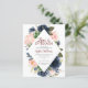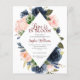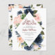 Chá de panela Flores azuis e Cor-de-Rosa Esmagada. Um elegante e moderno chá de panela floral convida a participar de um buquê de rosas de aquarelas moles, cor-de-rosa-pincel em tons de ventre, com folhas botânicas esverdeadas e verdes. Personalize seus detalhes de chá de panela em um suculento delicado com ênfase na caligrafia manuscrita.