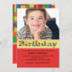 Um divertimento, design unisex que caracteriza uma variedade dos blocos de apartamentos coloridos que compo a palavra "aniversário" em uma bandeira amarela com um fundo vermelho. Apenas adicione a foto da sua criança para fazer-lhe seu.