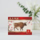 Ano Chinês do Vermelho Ox | Folha de ouro | Pintura tradicional asiática dos cartões postais Ox design em chinês. Os personagens chineses no design são um sinal Ox no Zodíaco chinês e o mais comum é a saudação chinesa de ano novo. Cartões correspondentes, envelopes tradicionais chineses vermelhos de Hongbao e presentes disponíveis no Ano Novo Chinês / Ano Ox da nossa loja.