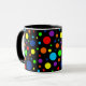 Um teste padrão corajoso do ponto com os pontos coloridos desiguais no preto.