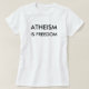 Este design simples do t-shirt foi feito para apoiar para fora todos os ateus lá quem acreditam na liberdade que o ateísmo oferece, que não é sempre verdadeiro de muitas das religiões do mundo. O ateísmo é liberdade.