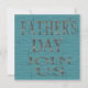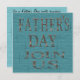 O azul embarca características do convite de festas do dia dos pais um fundo azul do conselho do celeiro, as letras de cobre que soletram para fora o dia dos pais se juntam nos. O texto setup na parte traseira para adicionar seus detalhes do evento. O convite à moda & na moda do dia dos pais está disponível em dois tamanhos; 5x7 e 5.25x5.25. Adicione seus detalhes à parte dianteira e a parte traseira simplesmente escolhendo "personaliza-a!" abotoe para começar a adicionar seus detalhes do evento, estilo de pia batismal, tamanho & cor de pia batismal, e expressão. Este design foi criado usando o artwork© original www.delightful-doodles.com (nenhuma madeira real, ou o cobre está neste produto de papel, é projetado artìstica aparecer esta maneira)