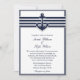 O azul marinho náutico engole convites do casamento - as características de design dianteiras uma fita da âncora. O design e o texto são azuis marinhos sobre um fundo branco. O design traseiro continua a fita em torno do cartão e as cores do esboço e do fundo têm sido comutadas agora, onde o esboço é branco e o fundo é azul marinho. No meio são duas andorinhas em vôo, trabalhando junto para levar uma âncora em uma corda. O papel é ajustado à revelia ao estoque básico do convite, mas podido ser mudado clicando "escolhe seu estilo" que usa então o de papel deixa cair para baixo a picareta uma da caixa das opções. Cada convite vem com um envelope branco. Para mudar a pia batismal, o tamanho de pia batismal, ou a cor da pia batismal, clicam o botão da personalização abaixo do convite náutico do casamento. Nota você pode ter que personalizá-la se determinado fraseio é demasiado longo e assim cabe o design melhor. Se o seu satisfeito com a instalação da pia batismal, você pode usar a característica do personalizamento para mudar a informação da demonstração a seus detalhes pessoais. Clicar as imagens pequenas da parte dianteira/traseiro do cartão com mudança a esse lado assim que a ele pode ser alterado. Quando feita a verificação a informação que você se aplicou está correta e isso você não tem nenhum erro de soletração em ambos os lados do cartão.