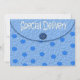 Estes convites bonitos super do chá de fraldas são azuis com as bolinhas azuis mais escuras. Os convites são projetados olhar como os envelopes feitos do papel áspero e ter um fechamento azul do botão. A aleta de envelope diz a entrega especial na pia batismal branca. Este texto é construído no design, conseqüentemente não é customizável, porém todo o texto no verso é! O outro lado destes convites do chá de fraldas dos meninos do envelope dos pontos do azul tem o mesmo azul no design azul das bolinhas e em uma área branca para seu texto na pia batismal azul. Este chá de fraldas que os convites são perfeitos para comemorar a próximo chegada de Mamã-À-Está entrega especial do bebé pequeno!
