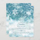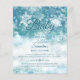 Bebê de inverno, é frio fora do chá de fraldas do orçamento, cor azul de chá, fundo de neve com flocos de neve. Sinal de boas-vindas para o chá de fraldas da temporada de inverno.