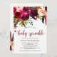 Este bebê na moda polvilha flores bonito da aguarela das características do convite em máscaras vibrantes do marsala, vinho, profundamente - tipografia moderna verde, vermelha, e roxa, e combinando.