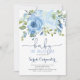 Bebê no Bloom Blue Watercolor Chá de fraldas convite para bebê