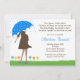 Polvilhe a mamã para ser com este bebê adorável polvilham o convite para um menino. Caracteriza uma mamã grávida do afro-americano com gotas de um guarda-chuva e da chuva. Alguns elementos BabyStarDesign. Ensolarado com uma possibilidade de polvilha!