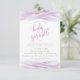 Este 3,5" moderno e na moda x 5" bebê customizável polvilham cursos diagonais da aguarela pintado à mão das características do convite através da parte superior e da parte inferior com uma linha de prata acento. O texto "bebê polvilha" está em uma pia batismal bonito do roteiro e é mostrado no rosa. A parte traseira é uma cor cor-de-rosa de harmonização (mas pode ser personalizado a toda a cor que você escolher) com listras diagonais.