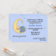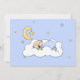 O bebê doce polvilha o convite do chá feito com um fundo azul, com colorido polvilha aqui e ali. Os gráficos bonitos de um bebé que dorme em uma lua crescente, decoram o canto de superior esquerdo, e um bebé que dorme em uma nuvem decora a parte traseira do convite. O texto em preto e no azul está pronto para personalizar para seu evento do chá de fraldas. Convite que bonito a mamã a ser salvar para nunca, com as lembranças do seu bebê novo.