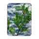 Uma cascata de cascata brilha na luz do sol. Um galho de solteiro de uma árvore na borda das quedas se estende precariamente sobre a água que está correndo. No canto do galho, um passarinho construiu um ninho, solto pacificamente sobre a turbulência.