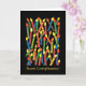 Um cartão de aniversário brilhantemente colorido com velas e "feliz aniversario" no italiano, de uma colagem de papel pintado à mão por Judy Adamson. O interior é deixado vazio para sua própria mensagem.