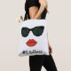 Lábios e óculos de sol vermelhos brilhantes. Sacola perfeita das senhoras. Beije suas preocupações adeus com esta sacola do viagem das férias.