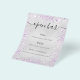 Por favor, note que este menu está no papel folheto e muito fino. Para menus mais espessos (mesmo design) visite nossa loja. Um fundo falso, de aspecto prateado, decorado com brilho violeta roxo, faíscas. Com o texto: Abrir bar. Personalize e adicione o menu bar.
