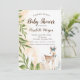 Um belo duche de elefantes convida um adorável veado bebê com folhas de árvore. Esses convites para chuveiros de bebês elefantes são facilmente personalizados para seu evento simplesmente adicionando seus detalhes de evento.