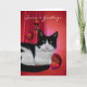 Cartão de Natal à moda com gato e os ornamento preto e branco