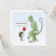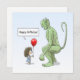A garotinha diz feliz aniversário para sua amiga o grande goblin verde.