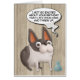 Para o seu amante de cachorro favorito! Esse pãozinho fofo ficou tão animado com seu aniversário que ele comeu seu bolo e vomitou! Um desenho francês de buldogue adorável com um saco de belas botas francesas num fundo de madeira fotorealista e rústico.