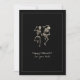 Algumas saudações são sussurradas; esta é um tango. Num vasto e impenetrável pano de fundo da noite, dois esqueletos, seus ossos presos juntos pelo fio fino de uma piada cósmica, se engajam em uma dança. É uma dança da contradição, de celebrar a vida com o próprio símbolo da sua ausência. Olhem atentamente para as suas posturas — uma com uma mão levantada num gesto de surpresa ou talvez de rendição, a outra com uma perna arrancada, um chute silencioso no absurdo de tudo isso. Eles são alegres, no seu caminho. São os partidários que chegaram atrasados, mas que compreendem melhor do que ninguém a natureza das festividades. Essa carta é um início de conversa para quem aprecia os pontos de humor mais finos e macabros. É para os amigos que encontram poesia em cemitérios, e que sabem que a vida é apenas uma longa e complicada dança para a cortina final e silenciosa. "Feliz Dia das Bruxas!" declara, uma declaração simples, mas profundamente irônica, seguida da promessa silenciosa de personalização. Isso permite que você adicione sua própria camada de significado ao absurdo, transformando-a de uma simples carta em um pequeno monumento portátil para sua própria marca única de fatalismo. Isto é mais do que uma saudação; é uma declaração.