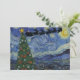 O Cartão de Férias de Natal Plana da Noite Silenciosa — Esta versão de feriado da infame pintura 'A Noite Estrelada' de Vincent Van Gogh apresenta uma grande árvore de Natal decorada, e a silhueta de Papai Noel e sua rena voando pelo céu noturno.