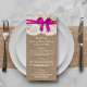 A coleção de arcos rosa rústica é um design com um adorável fundo de efeito de burlap rusticado com um romântico de efeito de renda branca vintage e um arco rosa espantoso. Esses menus podem ser personalizados para sua ocasião especial e fariam a modelo perfeita para menus de casamento, menus de chá de panela, menus de festa de noivado, menus de festa de aniversário e muito, muito mais. *Observe que o Zazzle só vende produtos impressos para que este item não tenha nenhum material real de burlap, rendas ou fita/ arco.
