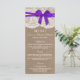 A coleção de arcos roxos rusticada é um design com um adorável fundo de efeito de burlap rustic com um romântico efeito de renda branca vintage e um arco roxo espantoso. Esses menus podem ser personalizados para sua ocasião especial e fariam a modelo perfeita para menus de casamento, menus de chá de panela, menus de festa de noivado, menus de festa de aniversário e muito, muito mais. *Observe que o Zazzle só vende produtos impressos para que este item não tenha nenhum material real de burlap, rendas ou fita/ arco.