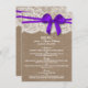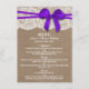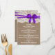 A coleção de arcos roxos rusticada é um design com um adorável fundo de efeito de burlap rustic com um romântico efeito de renda branca vintage e um arco roxo espantoso. Esses menus podem ser personalizados para sua ocasião especial e fariam a modelo perfeita para menus de casamento, menus de chá de panela, menus de festa de noivado, menus de festa de aniversário e muito, muito mais. *Observe que o Zazzle só vende produtos impressos para que este item não tenha nenhum material real de burlap, rendas ou fita/ arco.