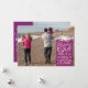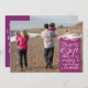 Comemore o aniversário do Jesus Cristo enviando um cartão personalizado da foto com bênçãos do Natal a seus família e amigos. Este cartão caracteriza a alcunha que o presente perfeito nos veio envolveu na roupa Swaddling. Adicione suas fotos de família para personalizá-lo. O design da parte dianteira deste cartão é ideal para uma imagem com os assuntos à esquerda do centro como a ameixa coloriu a "caixa de presente" é translúcida e a imagem será considerada abaixo. Você pode igualmente usar uma foto com os assuntos centrados em outra parte, apenas fá-la sob medida para sentar-se à esquerda da "caixa de presente" porque há um fundo cinzento escuro que mostre deixar a "caixa de presente" que aparece como uma cor mais escura da ameixa. O design da parte traseira igualmente tem bares coloridos da ameixa translúcida e as imagens aparecerão através deles.