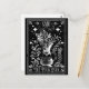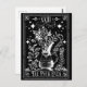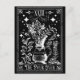 Design de cartão de tarot para amantes de café! O Pour Over. Ilustrações brancas e pretas com uma derramada sobre café, grãos de café e mãos esqueléticas.