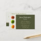 Este cartão de visita de professor original é feito em umas cores verdes e tan khaki, com fotografia de três maçãs coloridas no lado esquerdo do cartão. A parte traseira é feita como um cartão da nomeação para conferências do professor do pai. Todo o texto está pronto para personalizar com sua informação. Grande cartão de visita para algum professor.