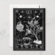 Design de cartão de tarô de Grunge para amantes de chá! O Chá. Ilustração branca e preta com um bule de chá mergulhando água numa xícara de chá, arbusto de chá e esqueleto.